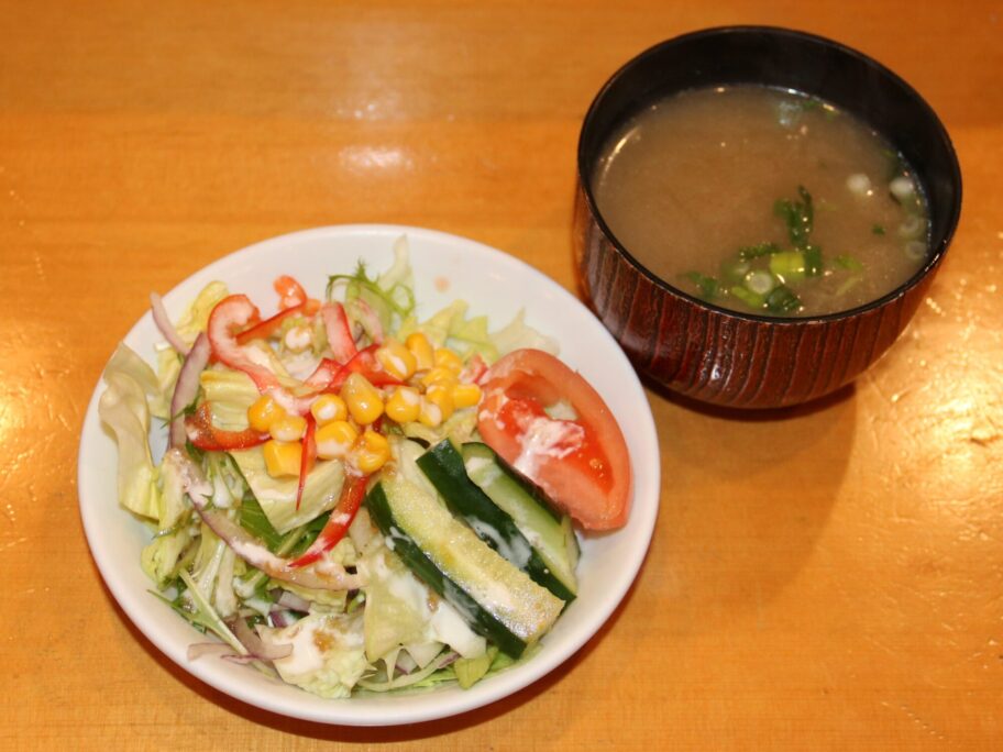 ▲サラダは種類も量も豊富。お椀も具だくさんでした