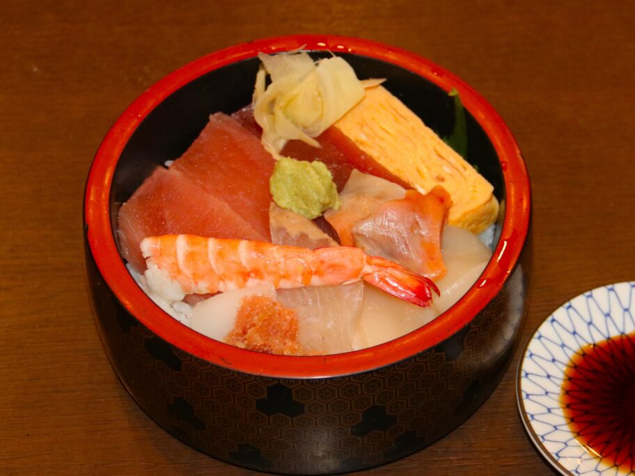 エビは申し分ない蒸し具合。明太子、玉子をいただいたら、最後に漬けマグロを連食。マグロで始まり、マグロで終わる。海鮮丼はこうありたいですね。