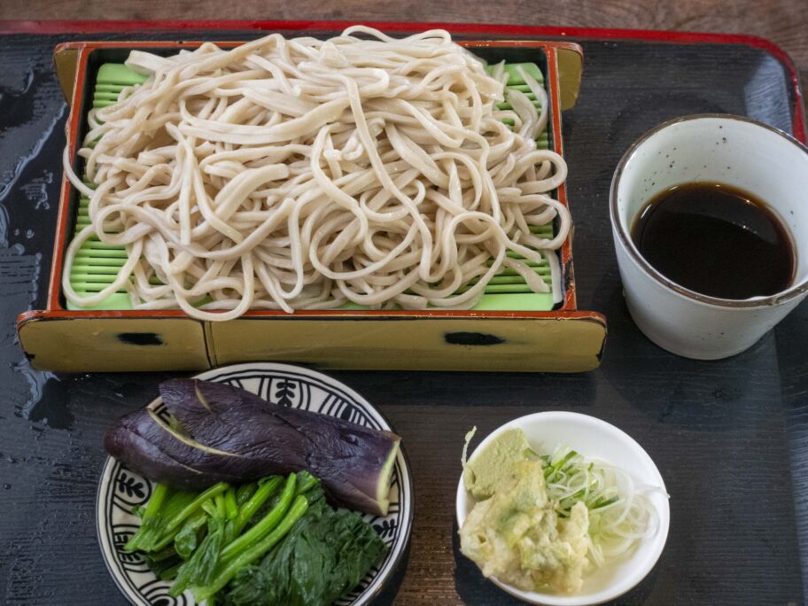 中細の蕎麦はやや平打ちで田舎風。まずは、もりそばとしていただきます。喉越しのいい、すっきりした蕎麦。手打ちなのに量もたっぷりあります。