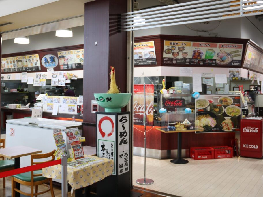 関越道前橋インター入口付近、レトロなショッピングモールのフードコート。ラーメン、うどん、蕎麦、ご飯物にデザート…。ものすごい種類のメニューがあります。