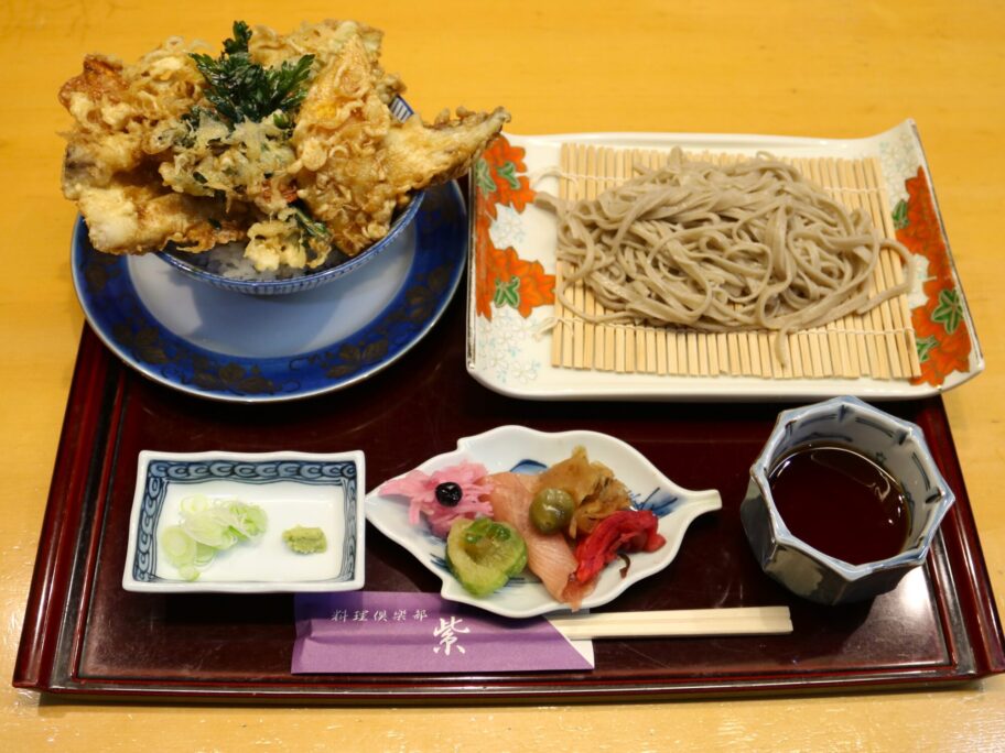 ▲十割蕎麦と穴子天丼。香の物も手作り