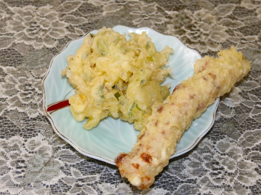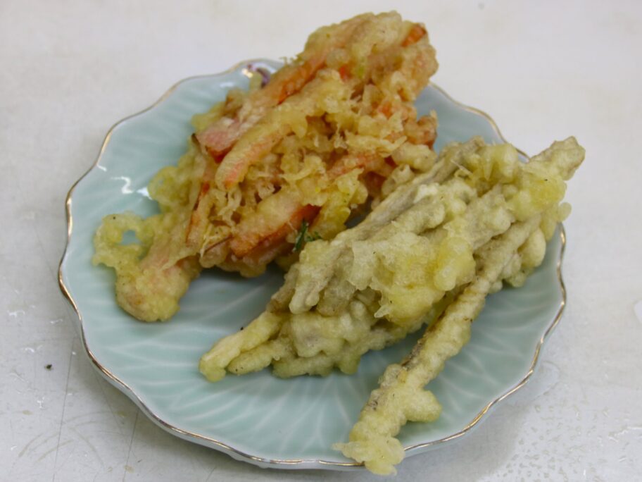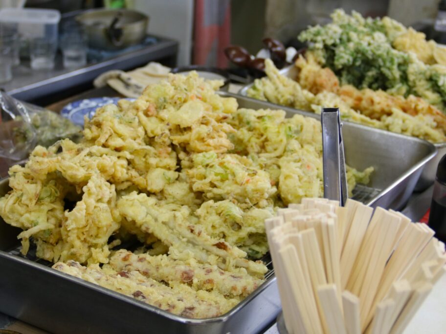 フキノトウの苦みは春を感じます。天ぷらは定番の野菜に加え、秋にはキノコなど旬の食材がそろいます。大きなゲソ天がなくなったのは寂しい限りですが、ナマズなど新たなネタも登場します。