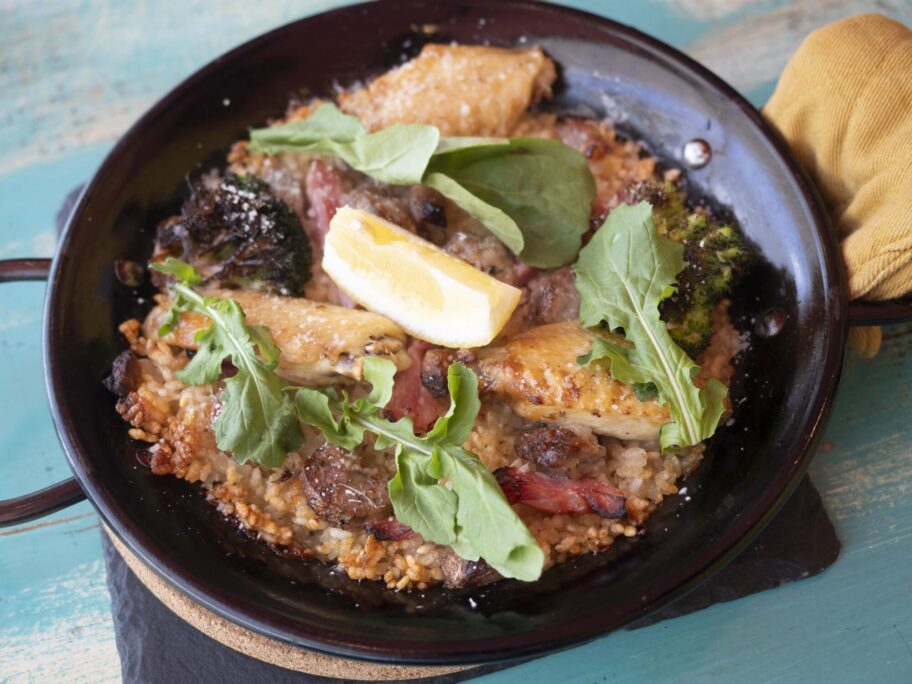 夜は洋風居酒屋、昼は10種類のパエリアとパンケーキを提供するカフェダイニングになります。