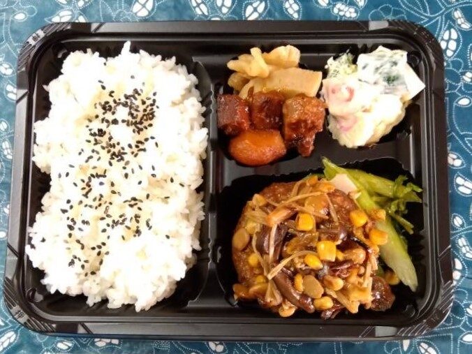 日替わり弁当の主菜は肉類だったり、焼魚や煮魚だったり。これに気の利いた惣菜が加わります。