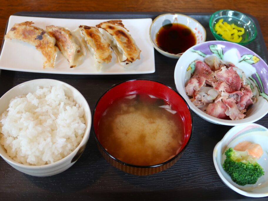 「餃子とタン塩玉葱定食」。餃子は分かりますが、タン塩玉葱って? 多彩なメニューの中で唯一、想像できなかった異彩な定食がやって来ました。