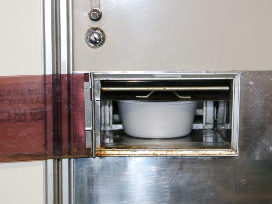 ▲受取口に出てきます。25秒の間に機械の中で調理します