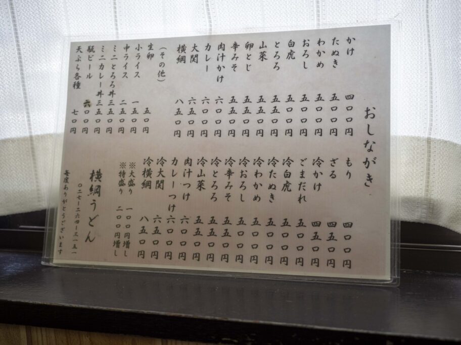 横綱うどんは1970年代に前橋市国領町で誕生しました。もりやかけを中心に好きな天ぷらを頼む独特の前橋うどんのスタイルを確立。本店は姿を消しましたが、前橋市内を中心に暖簾分けされ、独立した店がそれぞれの個性を出しながら、このスタイルを踏襲しています。