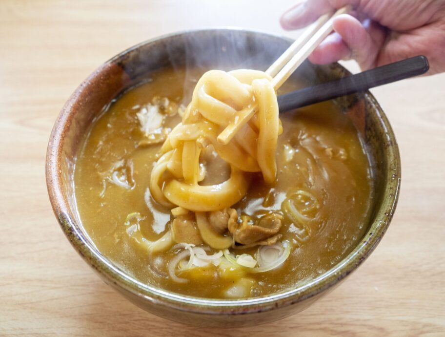 ▲カレーうどんも肉がたっぷり
