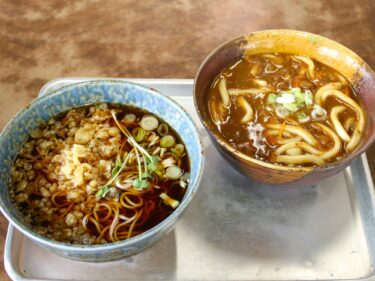 一口味見しましたが、やや甘め。相方は七味を投入して一気に平らげました。