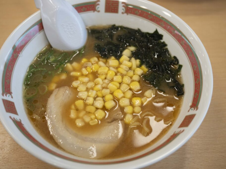 味噌ラーメンはチャーシューとコーン、ワカメが載って、ちょっと豪華に。