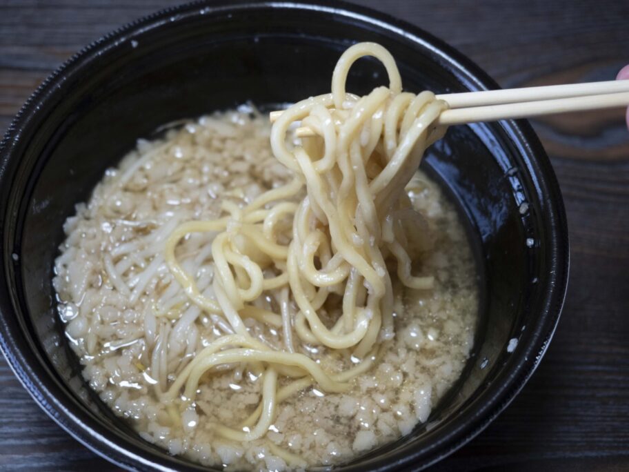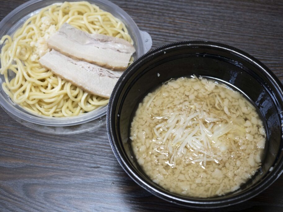麺を投入すれば完成ですが、せっかくなのでつけ麺の熱盛りでいただいてみました。これが、なかなか。さらに遊んで、後半は麺を冷水で締めてみました。麺の旨み、コシの強さが感じられ大正解。