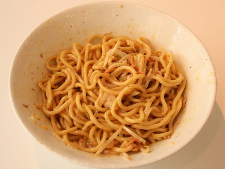 ▲まぜそばはビビンバのようによく混ぜて