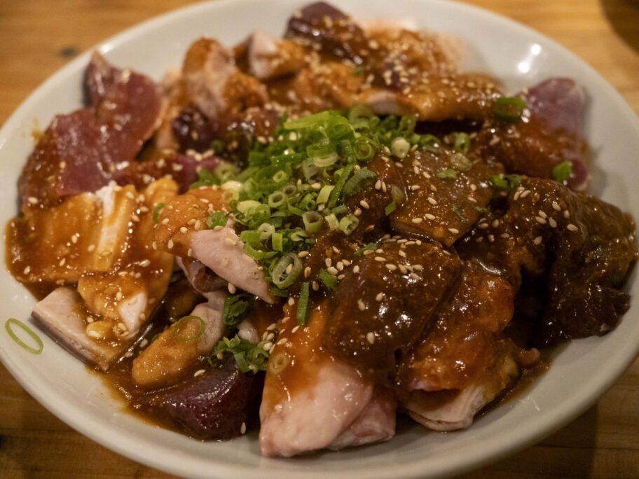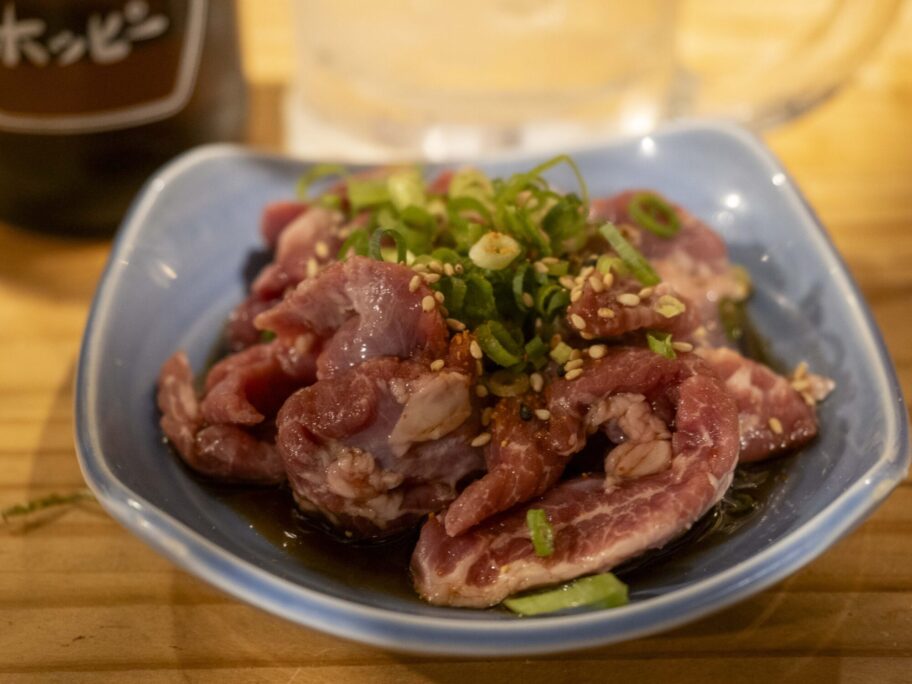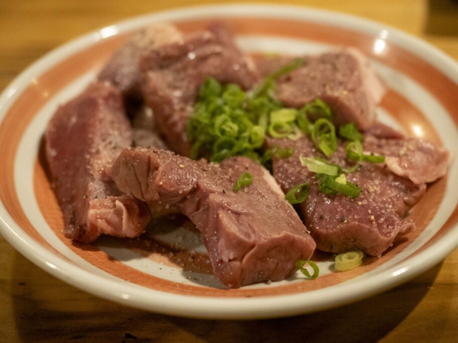 上州牛のカルビやタンもありますが、ここに来たら豚肉、それも内臓を極めたいですね。ガツ刺し、タン刺しもぜひご賞味ください。