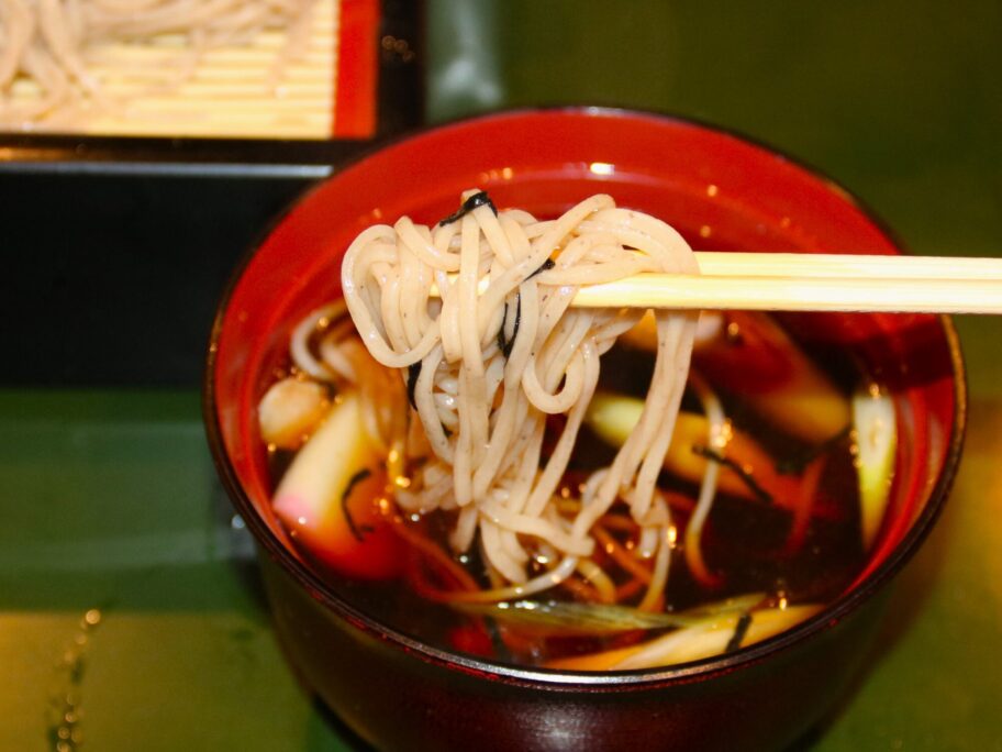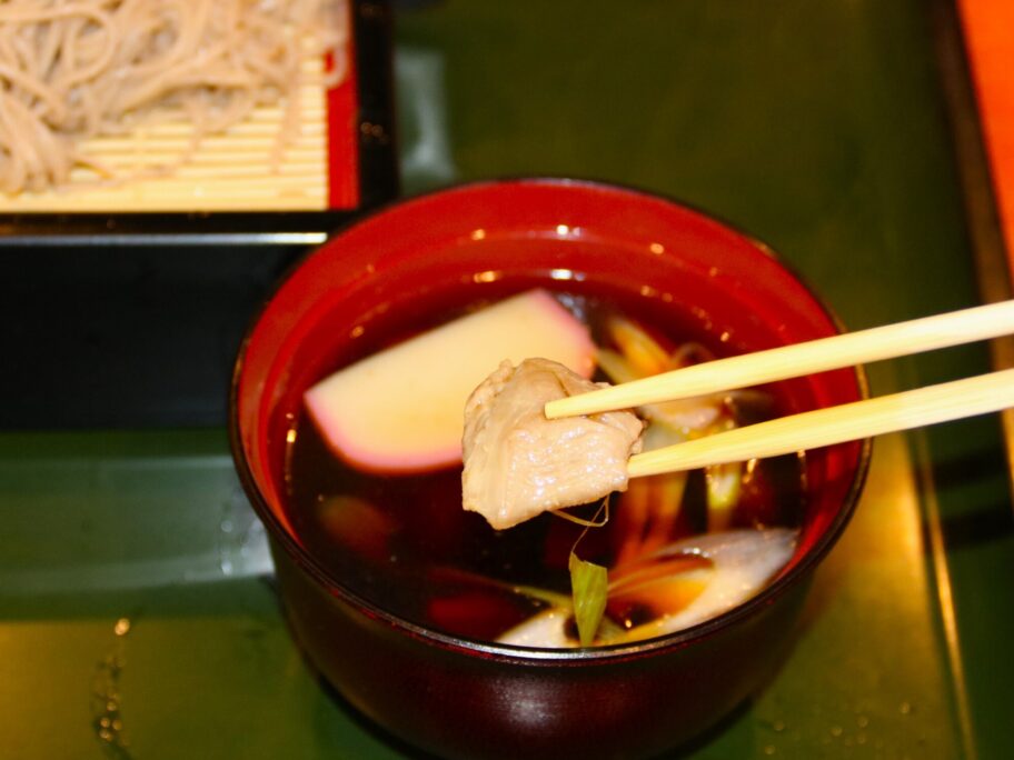 汁がやや甘めなので、七味を使いましょう。蕎麦の場合、七味は汁でなく蕎麦に振り掛けます。こうした方が辛みがよく感じられますので。