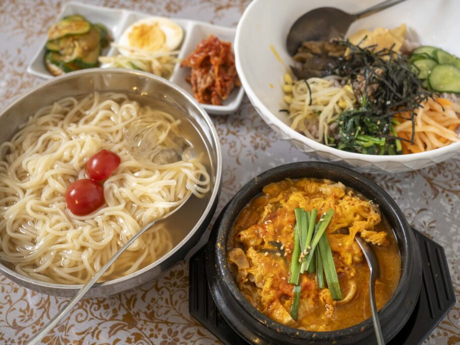 連れ2人が頼んだのはピビンバセットと冷麺。