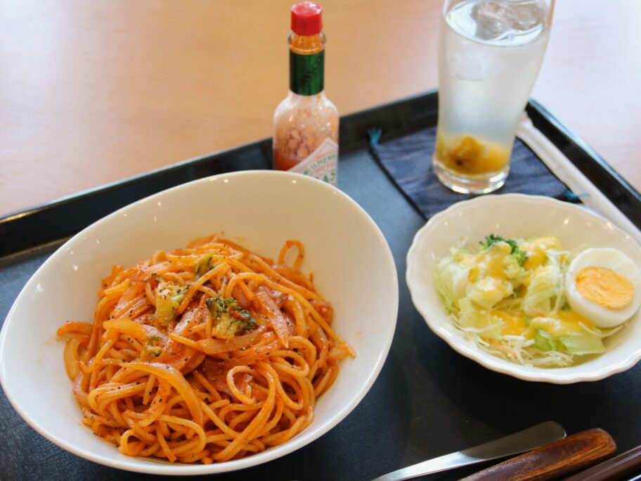 本日の注文は懐かしいナポリタンセット。アルデンテとは無縁の優しい茹で加減です。
