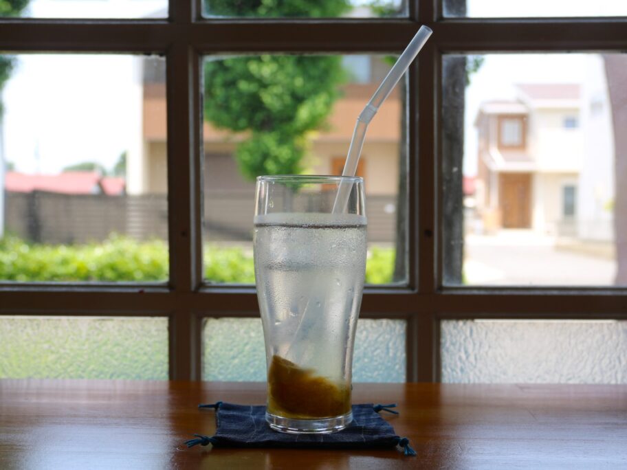 飲み干した梅ジュースに水を加えて、梅を崩して2杯目を作ります。「梅も食べてださいね」と笑顔の店員さん。はい、そうします。体の疲れも、心の疲れもどこかに飛んで行った気分です。