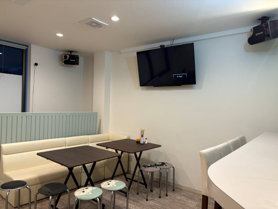カラオケルームが併設され、2人から25人まで貸し切りできます。徒歩30秒で2次会ができますよ。