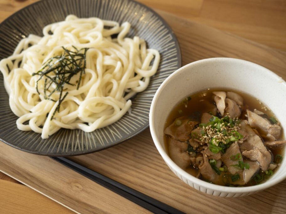 つけ汁肉うどんは本店より高めのお値段。その分、肉は多めかも。豚バラ肉からコクと甘みが出ています。昼時を外したためか、うどんが茹で置きだったのがちょっと残念でした。