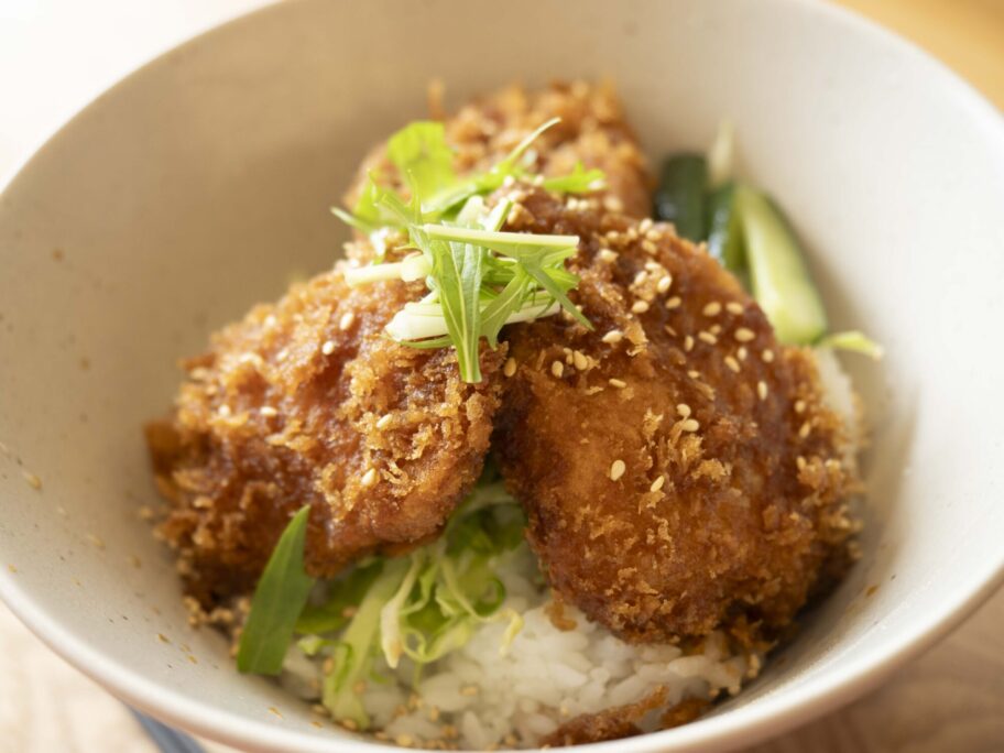 赤城山ソースかつ丼は名前通り、ヒレカツが山のようにそびえています。カツは3枚が標準。肉好きは5枚をどうぞ。肉は厚みがあって柔らか。気持ちよくサクッと歯が入ります。