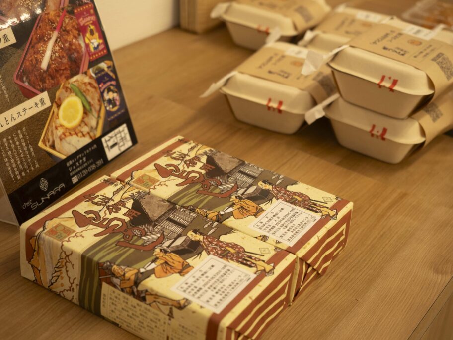 物産売り場の弁当コーナーで販売している登利平の鳥めし弁当、かつどんなかやのソースかつ丼、シェスナガのとんとん重も持ち込みOK。ホールで豚肉とキノコたっぷりのTONTON汁を提供してもらえるとありがたいですね。