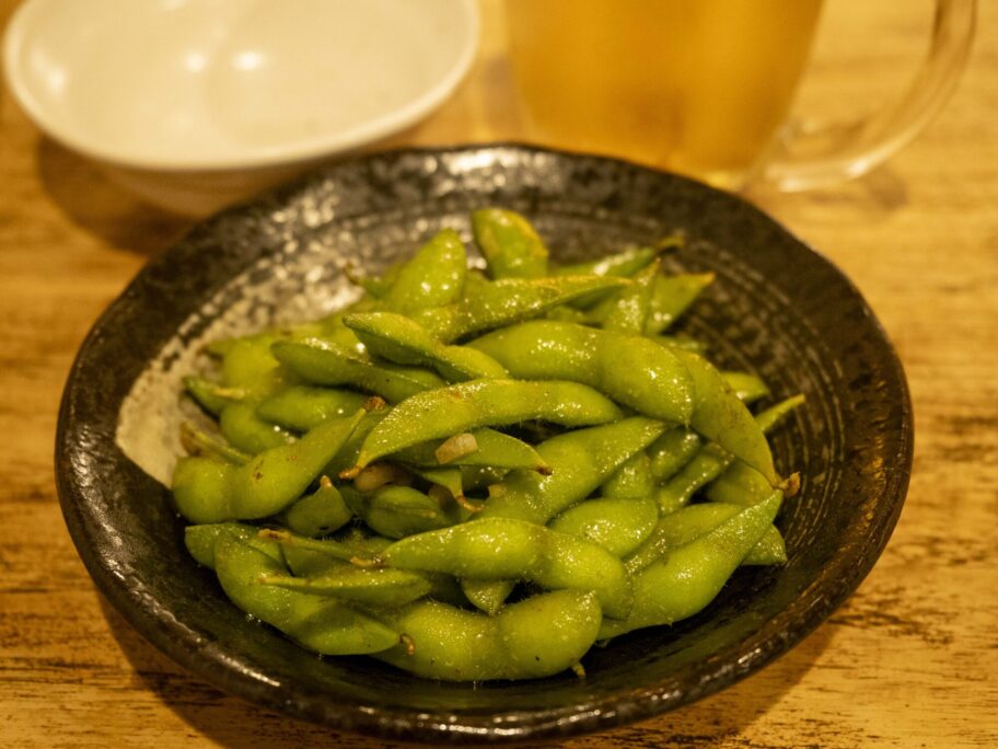 まずは、えだまめのガーリック炒めと、特製パセリだれの唐揚げ(少なめ)を注文。唐揚げメニューは、普通量と少なめを選べるシステムになっています。