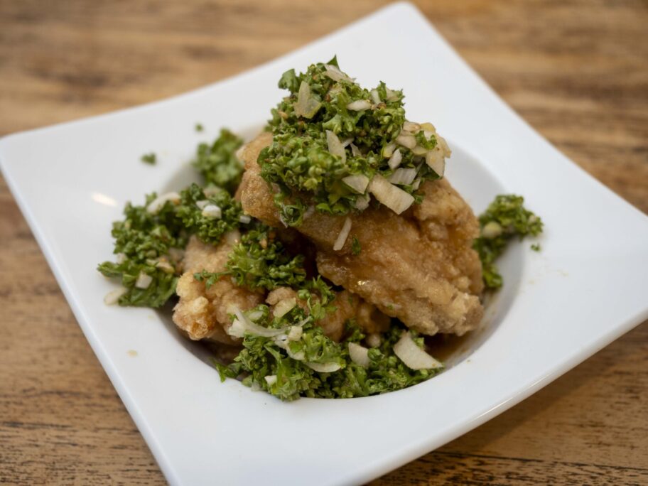 特製パセリだれの唐揚げは「おふくろの味なんです。子どもの頃から食べてました」と店主さん。
