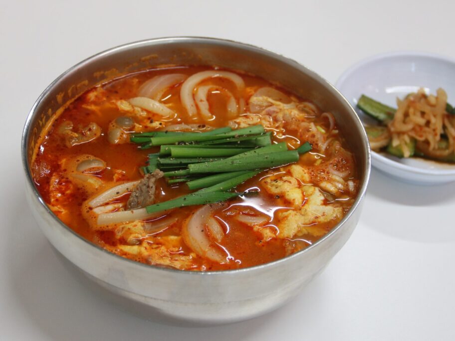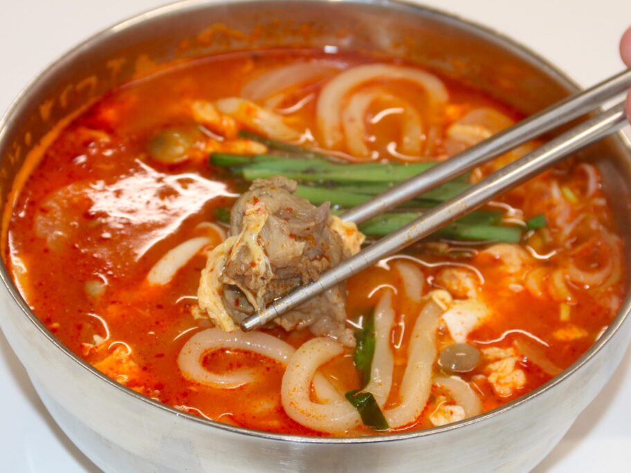 真っ赤なスープは辛さの中に牛骨から出た旨みとコクを感じます。ただ辛いだけではない、韓国料理の奥深さに脱帽です。
