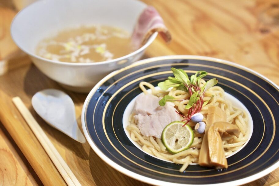 そのままでも旨いのですが、せっかくなので残った醤油スープを使い、つけ麺にしました。麺はこれまた特注の玉子麺。優しい味わいが〆に最高です。