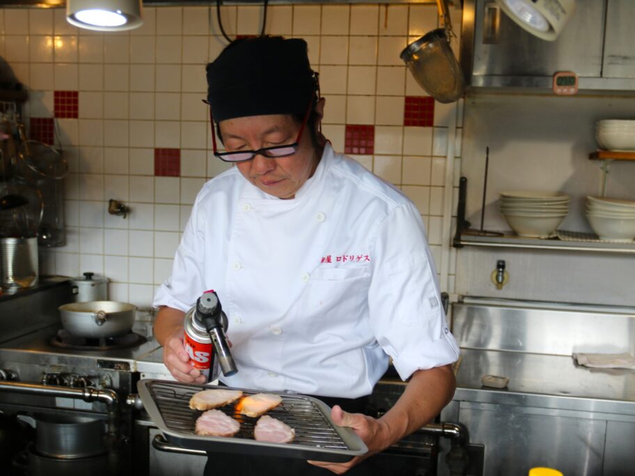 注文を受けると、齋藤さんはチャーシューをバーナーで炙り始めました。「メイラード反応と言って、タンパク質を高温で熱すると美味しくなるんです」と説明してくれました。