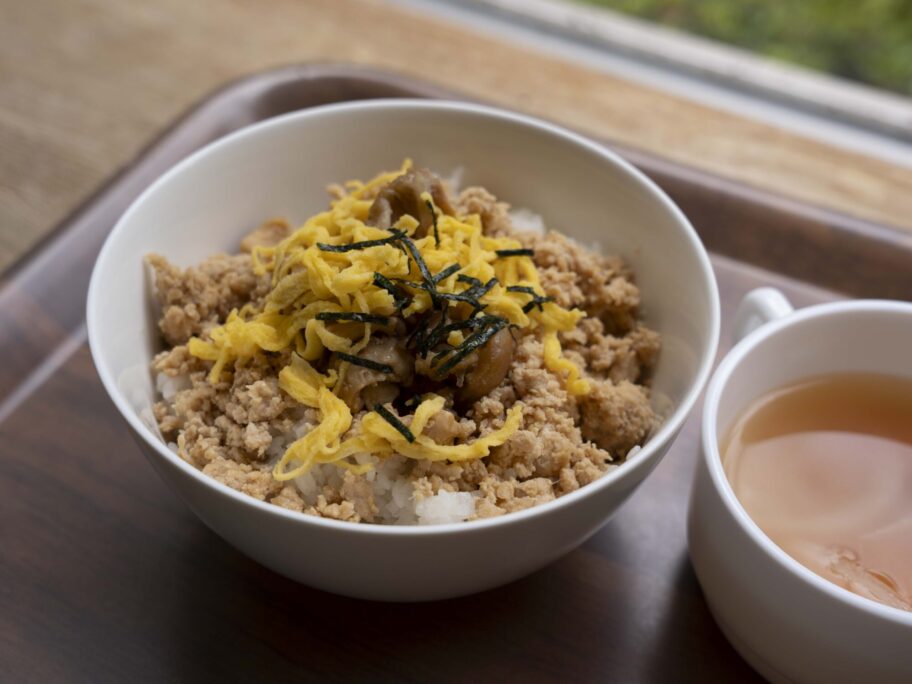隣の学生が食べているのを見ると鶏肉のそぼろ丼でした。そぼろだけでなく、鶏肉の小間切れと錦糸卵も載っていて美味しそう。学生に戻りたい。