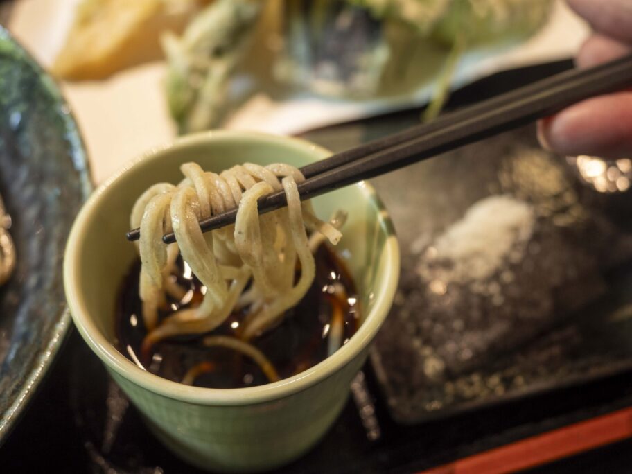 黒みがかった瑞々しい細打ちの蕎麦がざるに載ってきました。まずは、何もつけずに一啜り。十割にありがちなぼそぼそはなく、素晴らしい喉越し。野趣あふれる中に気品を感じます。