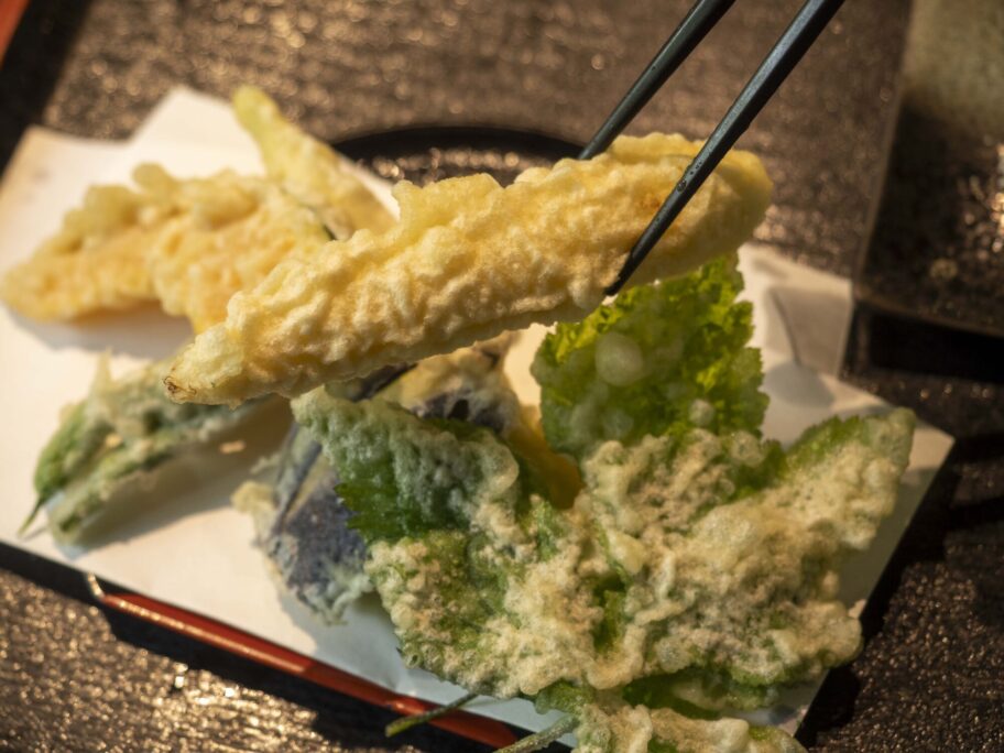天ぷらは根曲り竹、ヤングコーン、天然ミツバ、インゲン、新ジャガ、ナスにカボチャの7点盛り。赤城山の初夏の旬がそろいました。春は山菜、秋はキノコでしょうか。楽しみが膨らみます。