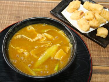 相方は牛すじカレーうどんです。A5ランクの黒毛和牛のすじ肉を使っているとか。プルンプルンがたっぷり。臭みはまったくなく柔らか。下処理が上手なのでしょう。
