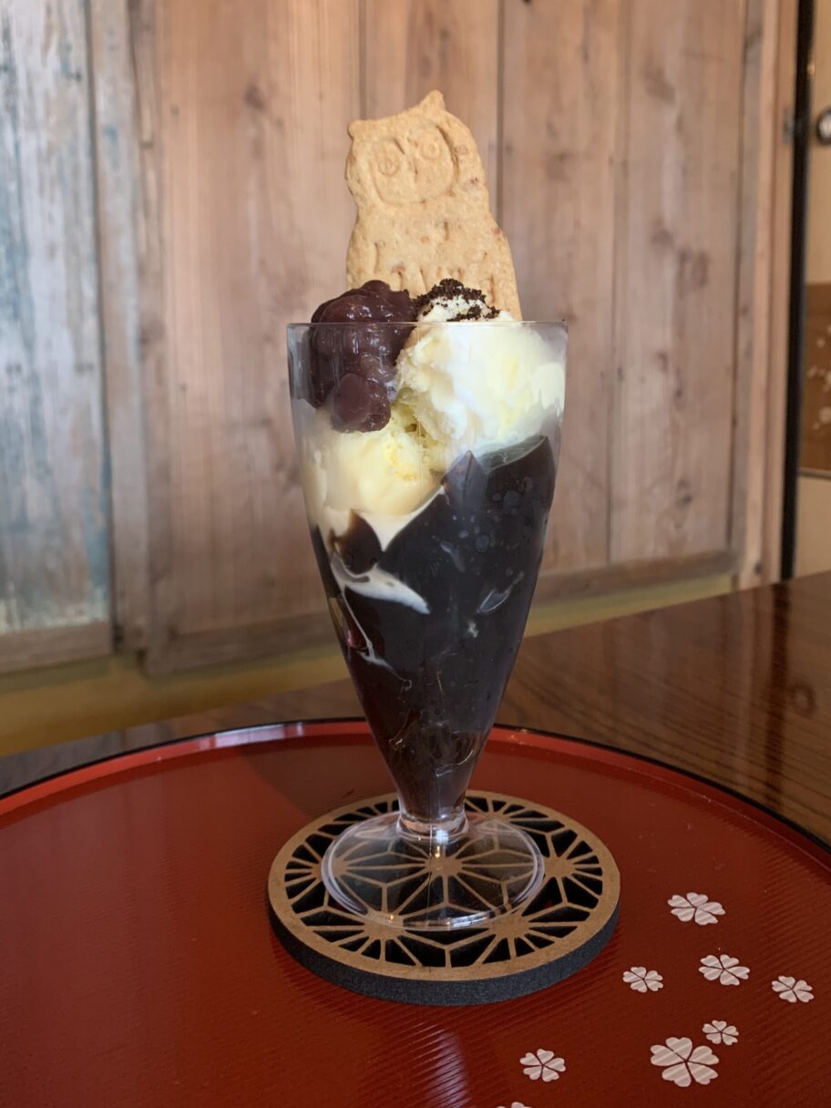 可愛いふくろうにちなみ、「ふくろうパフェ」をいただきます。