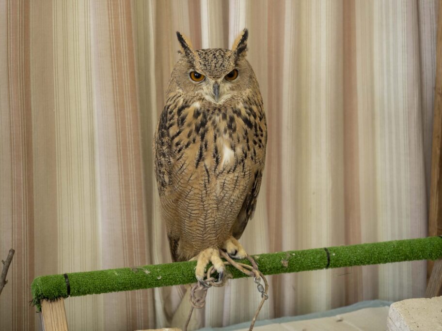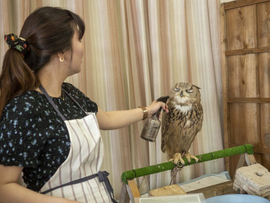 なんといっても目玉はふくろう。普段、前橋の「maizon de 梟」で生活している「あかぎふくろう一家」の10匹のふくろうのうち、毎週末、1匹が出張してきます。この日はワシミミズクのベルトルトくんでした。