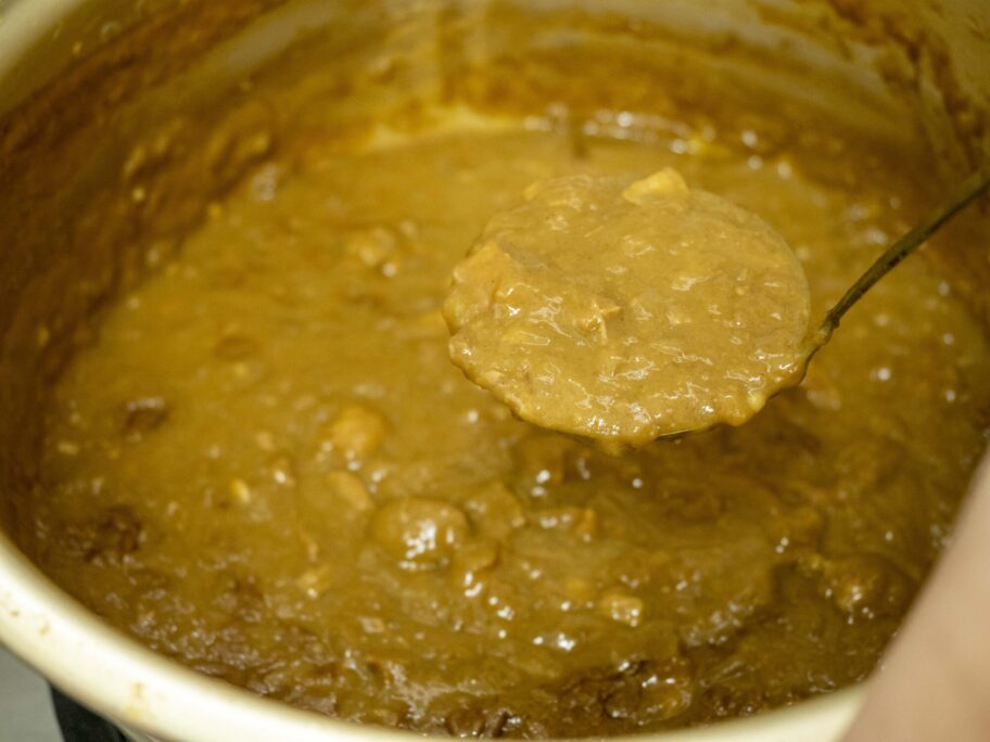 ▲湖山カレーのルー。大鍋でグツグツ