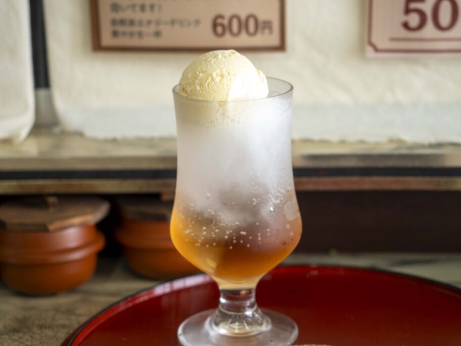 ▲季節のクリームソーダ。いまはイチゴですが、ビワを仕込み中とか