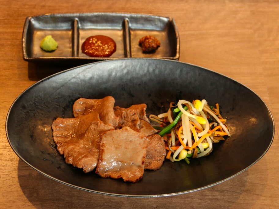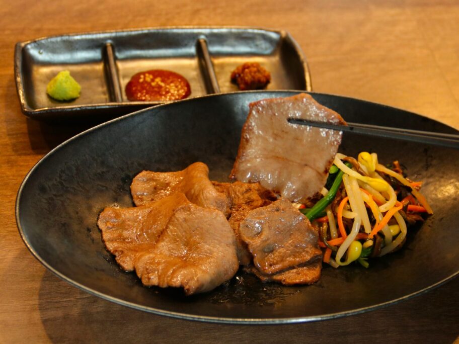 軽く塩味が付いているので、まずはそのまま1枚。柔らかくて脂も乗っています。「タンモトを仕入れましたのできょうだけ特別に入れました」と共同オーナーの1人、高橋淳さん。これは運がいい。