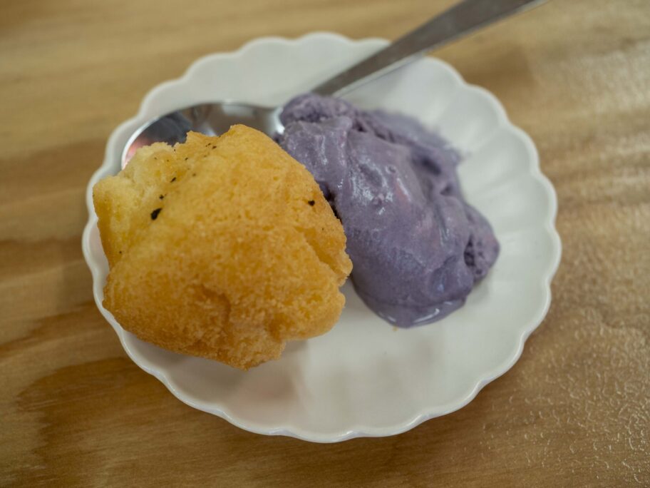 ▲サーターアンダギーにラズベリーアイスを添えて