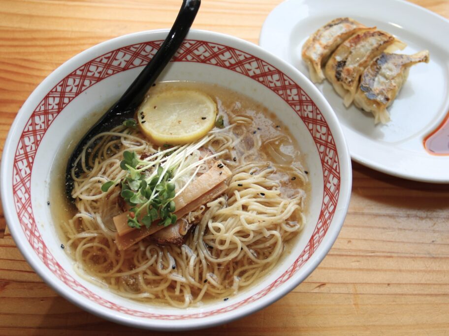 ▲醤油味の冷やしと餃子3個
