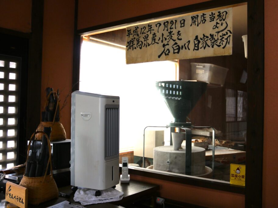 地粉を石臼で挽き、小麦の香りを大事にするため寝かせることなく、打ちたて、切りたて、茹でたてで提供するうどんはこれぞ武骨な上州うどん。コシが強く、噛み応えがあります。