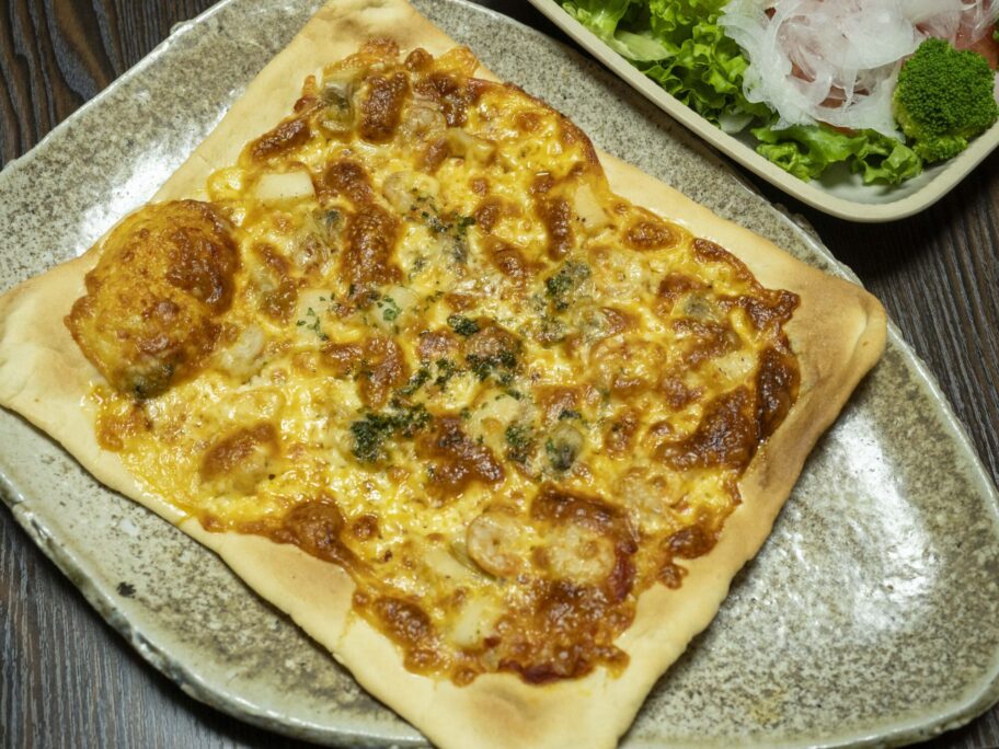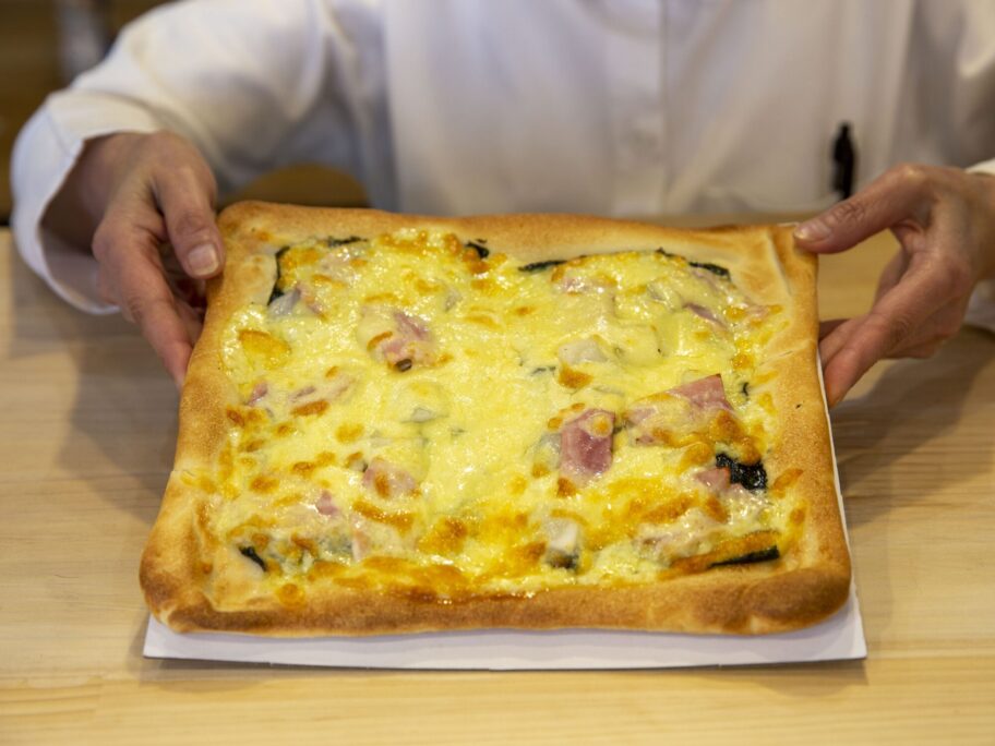 ▲人気のおもちのピザ。お店でも焼いてもらえます