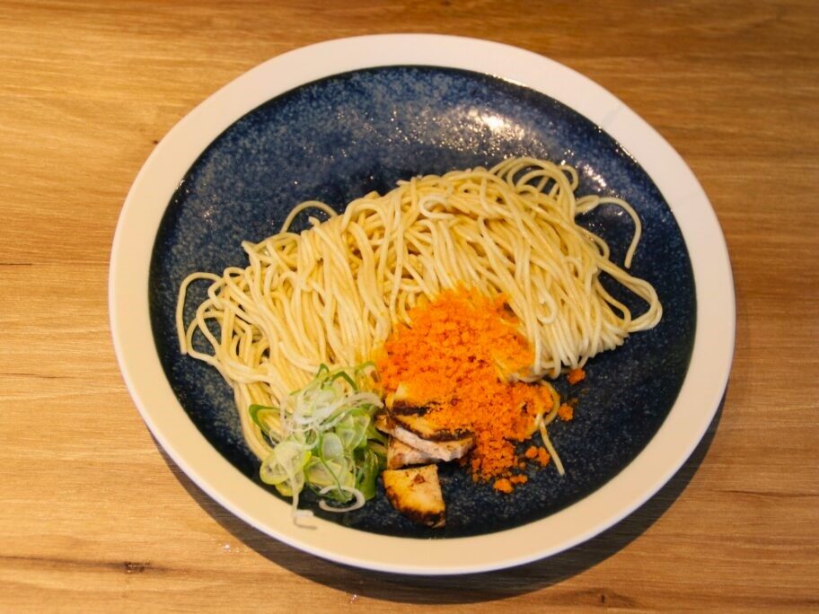塩麹で味付けた麺に贅沢にもカラスミのすりおろしが掛かっています。まずはこのまま和えていただきます。カラスミパスタのよう。これは旨い。