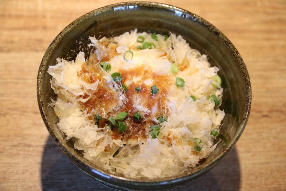▲究極のTKG.。鶏節と温玉が乗ったごはん