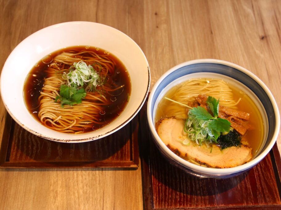 ▲醤油らーめんのかけ(左)と特製塩らーめん
