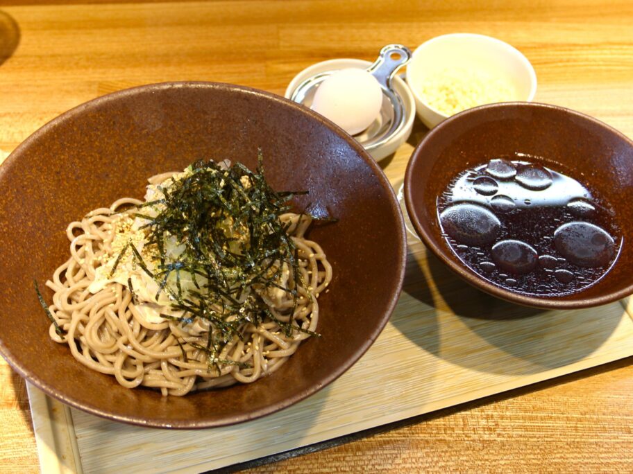 ▲卵は黄身だけ入れて蕎麦を味わったら