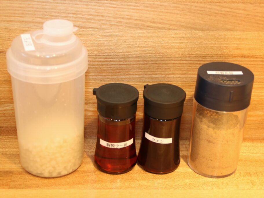 ▲右が特製魚粉。最初はラー油抜きにする手もあった