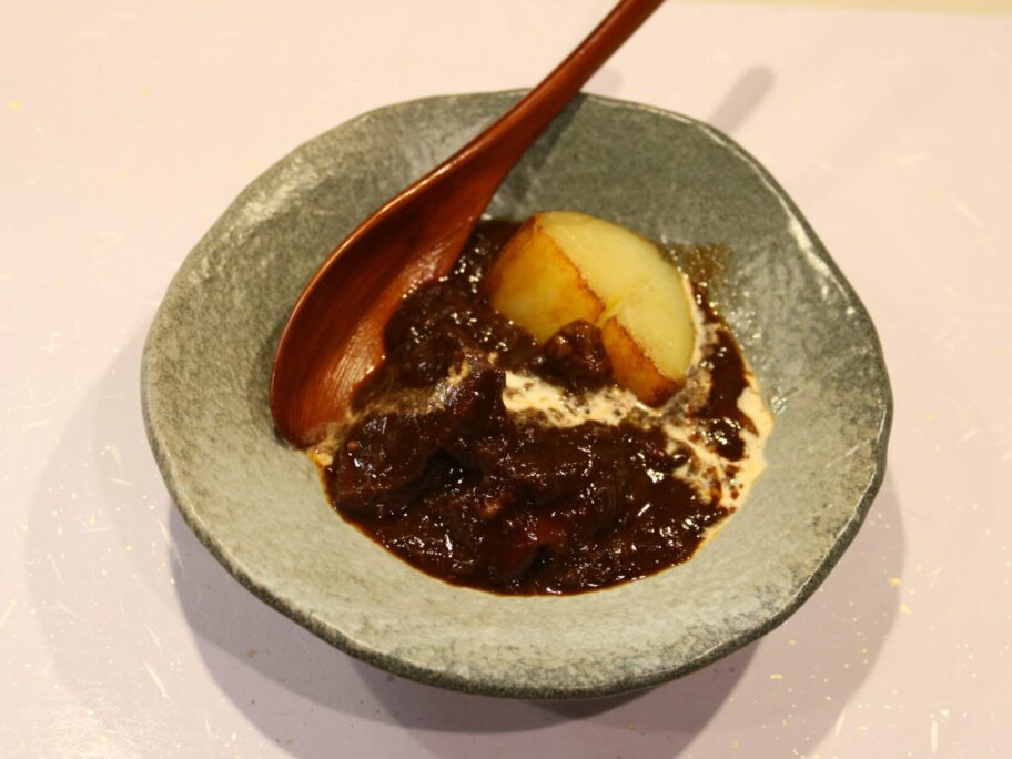 煮込みが続きます。タン先を3日間煮込んだタンシチューです。タンはほろほろ。親しみやすい味のデミグラスソースの隠し味は八丁味噌とか。