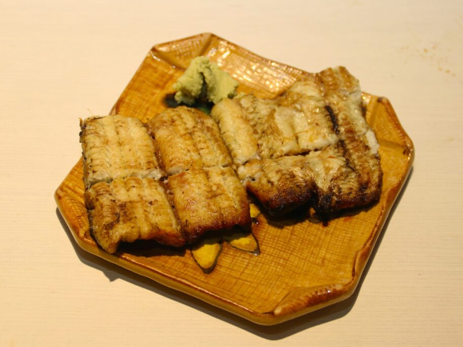 続いてはワサビ醤油に付けて。皮目がパリッとして、これは鰻料理の最高峰かと唸ります。